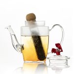 Per il nostro infusore abbiamo scelto un materiale nobile come il vetro temperato. Alla base dell’ampolla ci sono delle sottili fessure che permettono all’acqua di penetrare. Osservare le foglie di tè prendere vita una volta immerse nell’acqua e rilasciare gradualmente il loro colore durante l’infusione è una vera esperienza mistica. Inoltre il vetro non incide in alcun modo sul gusto del tè.