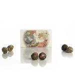 I fiori di tè sono delle piccole opere d’ arte. Solo le perfette gemme primaverili di tè e le foglioline più tenere vengono legate a mano da abilissimi artigiani intorno a un “cuore” di fiori delicati e colorati, per poi essere essiccate in forma di perle e sfere, che in acqua si trasformano in piccoli bouquet.