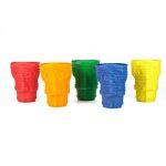 Dai goti di Gaetano Pesce, vasi realizzati in resina colorata, ognuno diverso dall’altro, come omaggio e manifesto di speranza per il futuro di Venezia, agli originali bicchieri “Fished in Venice”, dell’artista veneziano Antonio Dei Rossi, la cui forma a pesce rinvia all’inconfondibile sagoma della città lagunare. Altri oggetti di design per la casa sono quelli ideati da Massimo Nordio e da Silvano Rubino, entrambi maestri del vetro veneziano: dalla ciotola contenitore e vuota tasche in vetro variegato con la F Florian trasformata in “bricola” della gondola coi colori della divisa dei gondolieri, ai bicchieri a coppa “Tête à Tète” in vetro soffiato oppure ai calici “Impossibili” nella versione maschile e femminile, che sfidano a e poter essere davvero utilizzati per brindare. Anche la murrina gioiello dell’artista americana Judi Harvest è un unicum nel suo genere: riporta la scritta “Comunicate”, un messaggio ancora oggi molto attuale.