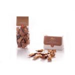 Mandorle tostate ricoperte di cioccolato fondente (cacao minimo 55%): pochi ingredienti semplici, ma di alta qualità che, amalgamati, danno vita a un vero capolavoro del gusto. Le migliori mandorle raccolte e sgusciate a mano, vengono calibrate e tostate fino a sprigionate il loro aroma caratteristico, per poi essere immerse nel cioccolato fondente, che regala al palato una piacevole sensazione enfatizzata dal contrasto dolce-amaro.